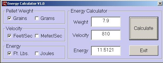 Detta program har utvecklats av Brad Troyer. Det är ett Windows XP-program och har inte testats på tidigare versioner av Windows. Programmet beräknar energin i en projektil med tanke på vikt och hastighet på projektilen. Kan beräkna all form av anslagsenergi, även på pilar och andra projektiler.